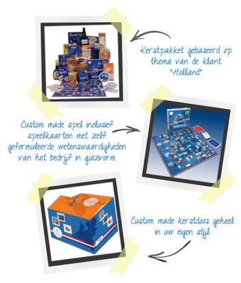 Hieronder enkele voorbeelden van geheel custom made kerstpakket.