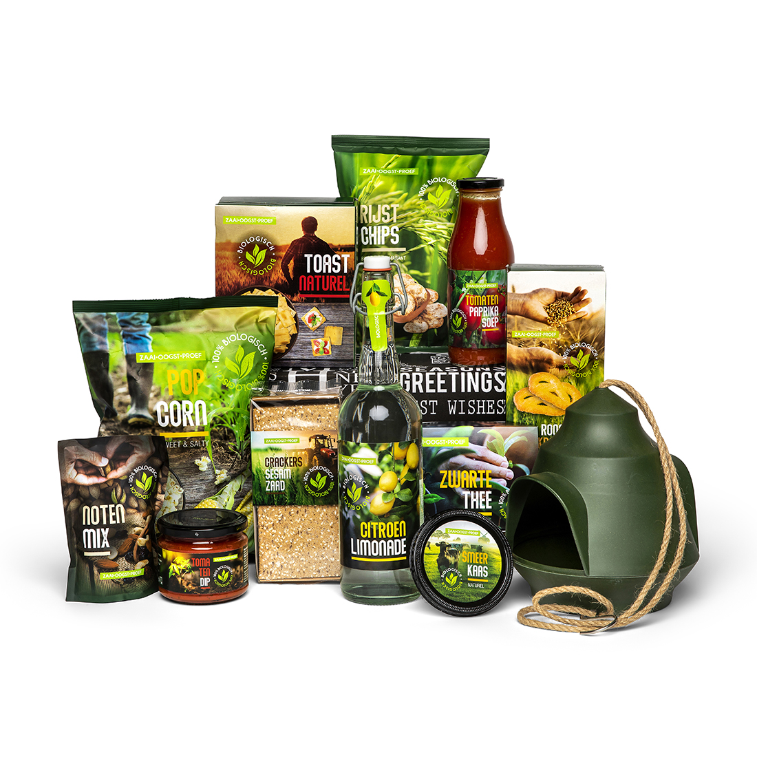 Biologische producten zijn onderdeel geworden van ons dagelijks eetpatroon. Geniet van dit smaakvolle kerstpakket met respect voor onze boeren en aandacht voor het gehele landbouwproces van zaaien tot oogsten en natuurlijk proeven. En natuurlijk magin dit biologische pakket het vogelvoederhuisje niet ontbreken.