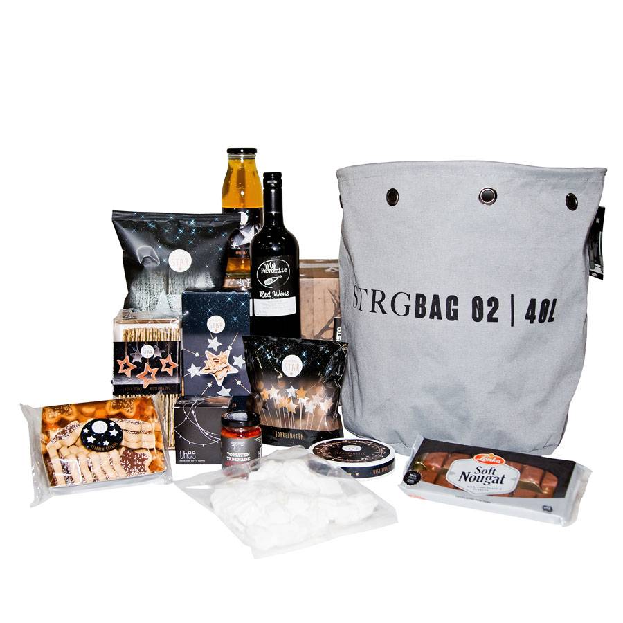 U zult verrast worden door de inhoud. Deze storagebag is helemaal gevuld met allemaal artikelen van hoogwaardige kwaliteit, genoeg voor de hele dag en aan jong en oud is gedacht. Ga maar gezellig bij elkaar zitten met de hele familie en geniet van al dit lekkers.