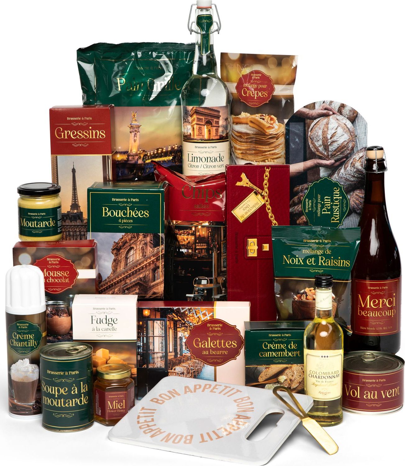 Wat is er mooier dan feestdagen in Parijs met haar gezellige brasserieën en sfeervol verlichte straten? Dit pakket neemt je mee op een culinaire trip door de Franse hoofdstad. De chique en elegante uitstraling van de stad Parijs wordt op de verpakkingen weergegeven door middel van prachtige foto's. Proef de verfijnde smaak van Franse klassiekers als crêpes, chocolademousse, galettes en camembert. Het fraaie serveerplankje inclusief kaasmes mag natuurlijk niet ontbreken. Met dit pakket creëer jeonvergetelijke momenten met echte Parijse flair.