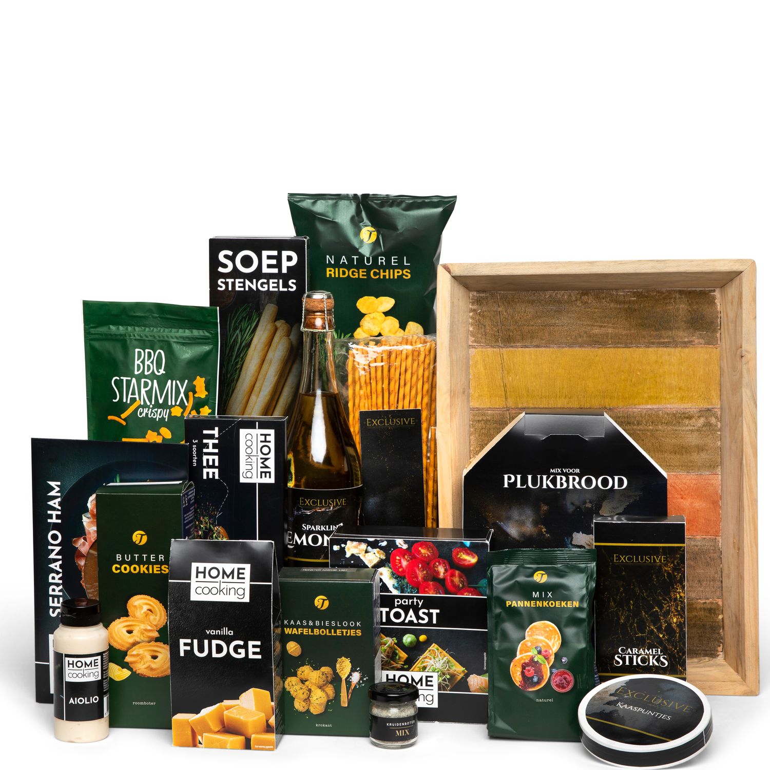 Investeer deze feestdagen eens echt in elkaar. Ga offline en beleef samen de gezelligste tijd van het jaar. Want na een jaar hard werken is er niets lekkerder dan even te ontspannen en te genieten van elkaars gezelschap en lekkere hapjes en drankjes.Het stijlvolle dienblad is een must have in iedere keuken. Dit unieke Home Cooking kerstpakket is gemaakt voor genieters en alleen bij ons verkrijgbaar.