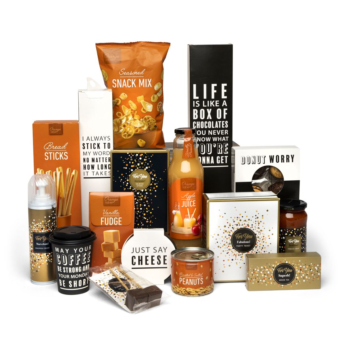 Luchtig en grappig! Dat is waar het in dit pakket om draait. De teksten, die u zeker aan het lachen maken, worden gekoppeld aan het food product. Dit pakket is dan ook een feestje om uit te pakken.