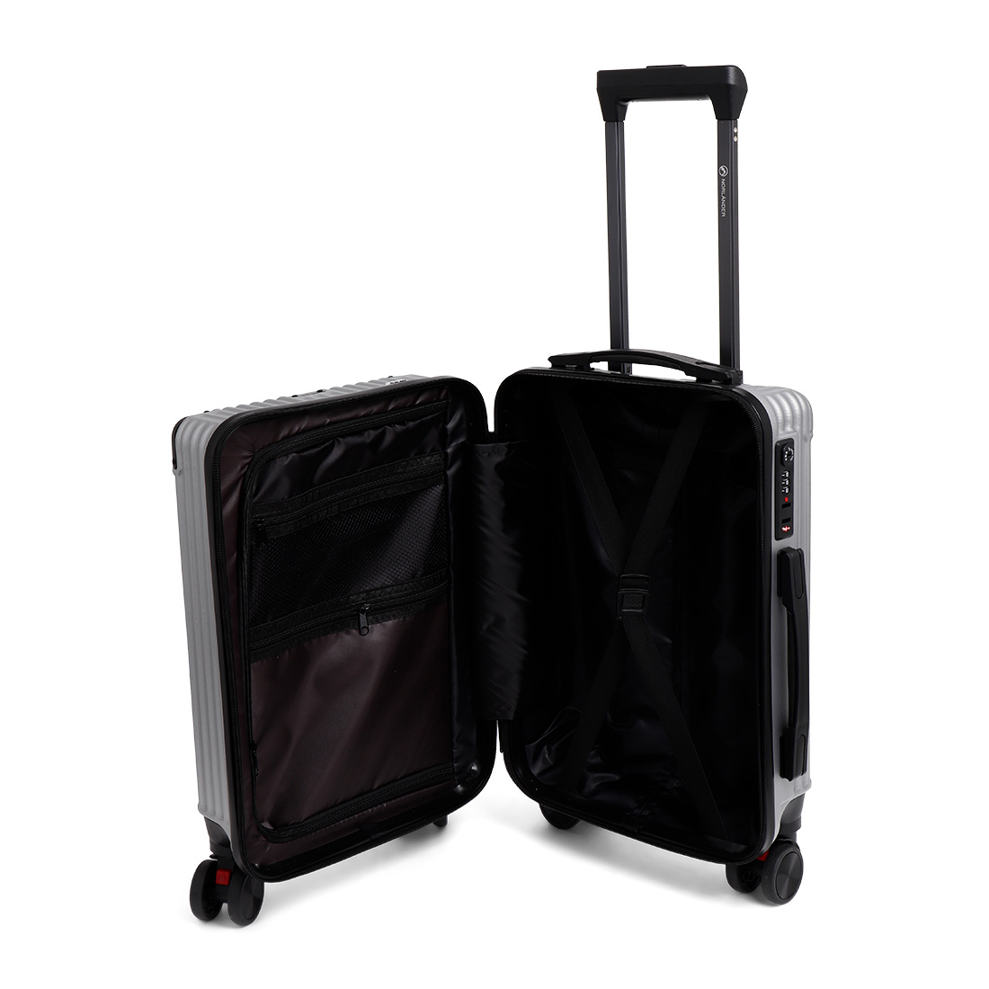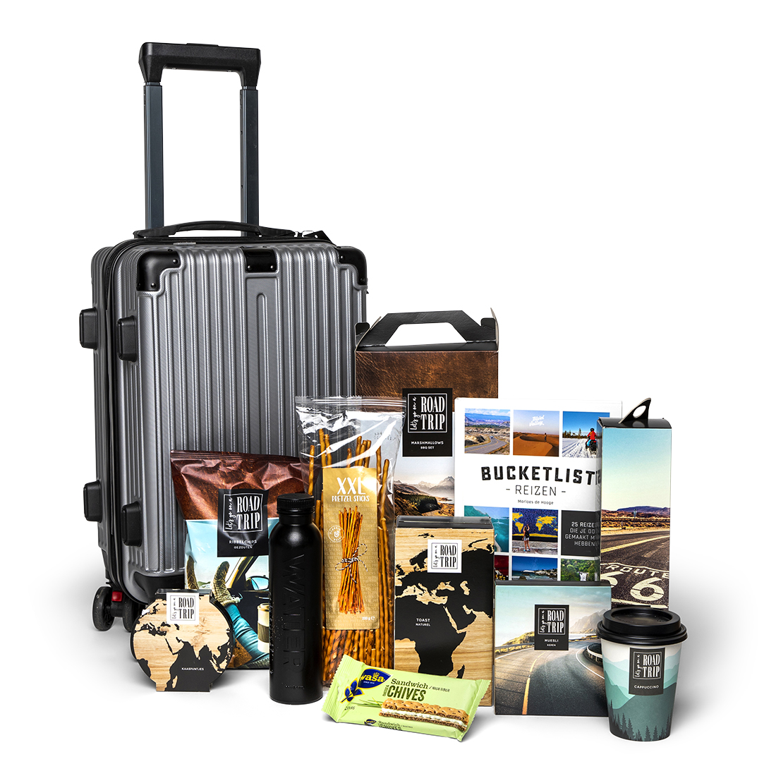 Een luxe en robuuste trolley in een aluminium look. Deze trolley is gemaakt voor dagelijks reizen en heeft op verschillende kanten aanvullende verstevigingshoeken. Met een handvat aan de bovenkant en aan de zijkant is de trolley prettig om op te tillen wanneer noodzakelijk. Deze trolley zal met de dubbel gelagerde soft wielen prettig meerollen wanneer deze aan het telescopische handvat wordt voortbewogen. Ook bevat dit luxe pakket een Bucketlist reizen boek met de 25 reizen die u ooit in uw leven gemaakt moet hebben. En de duurzame drinkfles komt dan goed van pas.