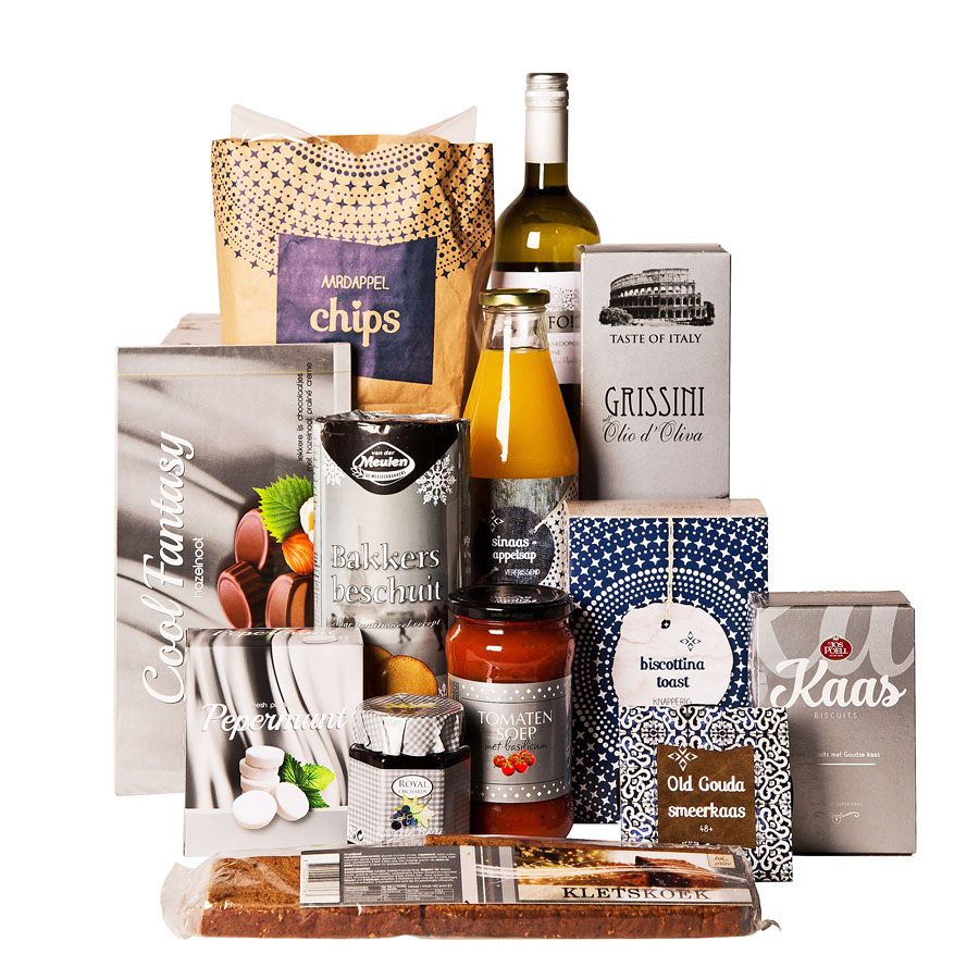 Een bomvol traditioneel kerstpakket tot aan de rand gevuld met heerlijke producten waarmee u gemakkelijk de feestdagen doorkomt.