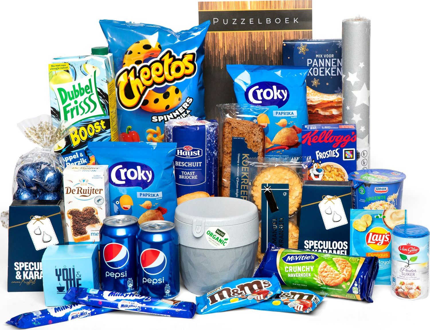 Hang de chocolade boomhangers in de kerstboom, kruip samen op de bank en geniet van de smaakvolle producten uit dit bomvolle a-merken kerstpakket. Deze Koziol lunchbox is gemaakt voor yoghurt, salades, gesneden fruit, muesli en alles wat je vlak voor het eten wilt mengen. De bovenkant biedt voldoende opbergruimte voor toppings zoals bessen, noten of croutons, het kleine miniblikje is voor sladressing, siroop of honing. Alle ingrediënten zitten netjes gescheiden en blijven smakelijk tot aan de maaltijd. De lunchbox is milieuvriendelijk, voedselveilig, 100% recyclebaar en zonder formaldehyde of BPA. Het is ook uiterst duurzaam, robuust en natuurlijk vaatwasmachinebestendig. Dit maakt dit kerstpakket dan ook een duurzaam kerstpakket. Het puzzelboek is leuk voor zowel jong als oud.
