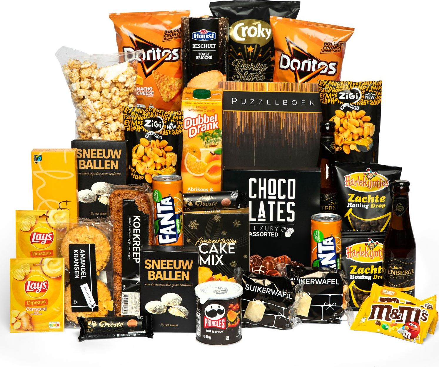 Een smaakvol pakket bomvol lekkernijen voor jong en oud, voor liefhebbers van zoet en hartig. Dat wordt genieten deze kerst met dit rijk gevulde a-merken kerstpakket. En mocht je je even vervelen, dan komt het puzzelboek goed van pas. Super leuk enleerzaam voor iedereen.