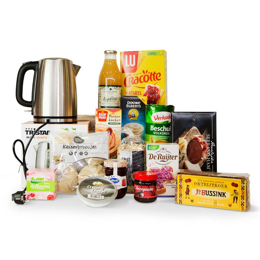 Dit mooie kerstpakket staat voor gegarandeerd succes bij uw medewerkers. Gevuld met de heerlijkste lekkernijen en een prachtige waterkoker van Tristar, zit u zeker goed!