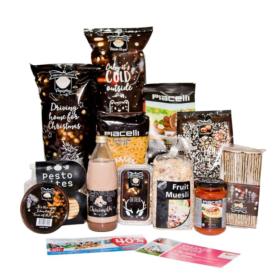 Buiten is het koud, maar binnen is het lekker warm en gezellig want het kerstpakket wordt uitgepakt. Allerlei smaakvolle producten om samen van te genieten deze feestdagen. Daar word je helemaal blij van!