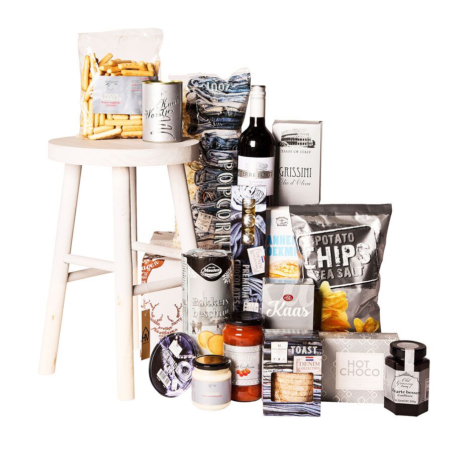 Zitplaatsen te kort tijdens de feestdagen? Twijfel niet langer en bestel dit overheerlijke pakket vol zoetigheid, lekkernijen en een modieuze grijze kruk, zodat u iedereen een zitplaats aan kunt bieden. Geniet met volle teugen van de feestdagen en bied uw familie/vrienden deze heerlijke rode wijn aan. Dit wordt een kerst om nooit meer te vergeten!