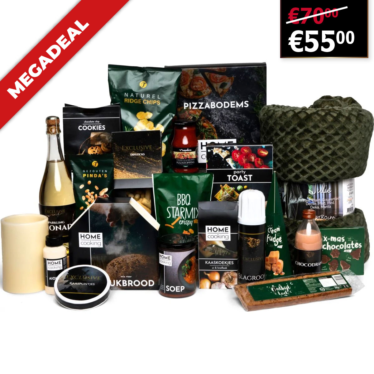 Alles voor een gezellige avond met vrienden of familie hebben wij voor u ingepakt. En alleen de lekkerste producten zijn geselecteerd. Een hapje en een drankje, u vindt het allemaal in dit smaakvolle Home Cooking kerstpakket. En met de super zachte plaid hoeft u het nooit meer koud te hebben. Dit unieke Home Cooking kerstpakket is speciaal gemaakt voor genieters en exclusief bij ons verkrijgbaar.