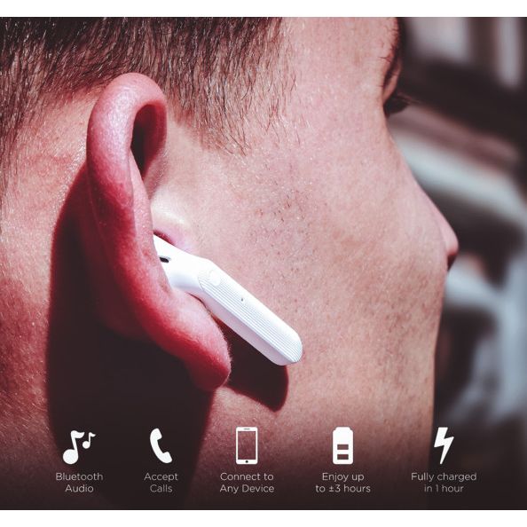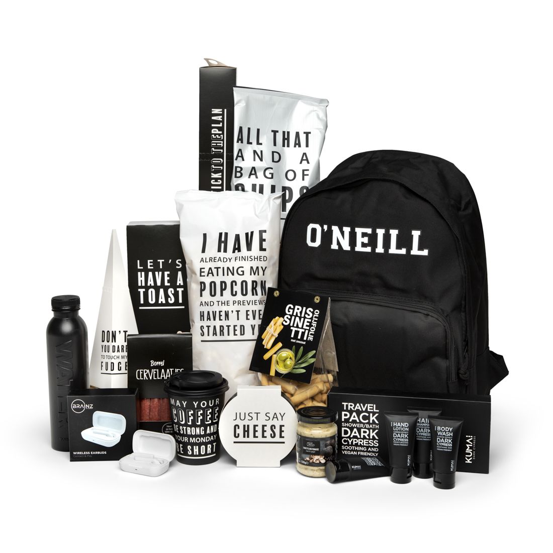 Luchtig en grappig! Dat is waar het in dit pakket om draait. De teksten, die u zeker aan het lachen maken, worden gekoppeld aan het food product. Dit pakket is dan ook een feestje om uit te pakken, zeker dankzij de handige O'Neill rugtas en het geurige reissetje. En deze draadloze oordopjes wil iedereen wel ontvangen. Licht van gewicht en met een goede geluidservaring kan er 2 tot 3 uur genoten worden van muziek. De case heeft een multifunctionele functie omdat hierin de oordopjes worden opgeborgen en opgeladen.