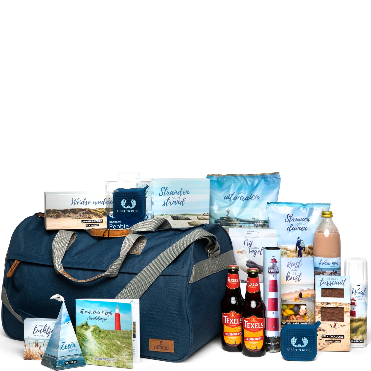 De Rockbox Pebble van Fresh 'n Rebel is een kleine draadloze bluetooth speaker en ideaal om mee te nemen waar je maar wilt. De speaker heeft een rubberen bumper waardoor de speaker spatwaterdicht is en tegen een stootje kan. De krachtige luidsprekerdrivers en de woofer zorgen voor een top geluid met extra bass. De stijlvolle en modieuze reistas van Nomad is gemaakt van polyester. De stevige draaghengels en de verstelbare schouderband geven een ideaal draagcomfort. Aan de voorkant is een rits van aanwezig. De binnenzijde van de tas heeft een opbergvak met rits en een harde bodemplaat. Dit pakket geeft je de ruimte om zorgeloos te ontspannen. Met de producten van Even Uitwaaien krijg je zeeën van tijd om op adem te komen voor een frisse start van het nieuwe jaar. Een deel van de opbrengst van Even Uitwaaien gaat naar de organisatie van Beach Cleanups door Love, Not Waste. Zo worden de stranden van de Nederlandse Noordzeekust schoner.