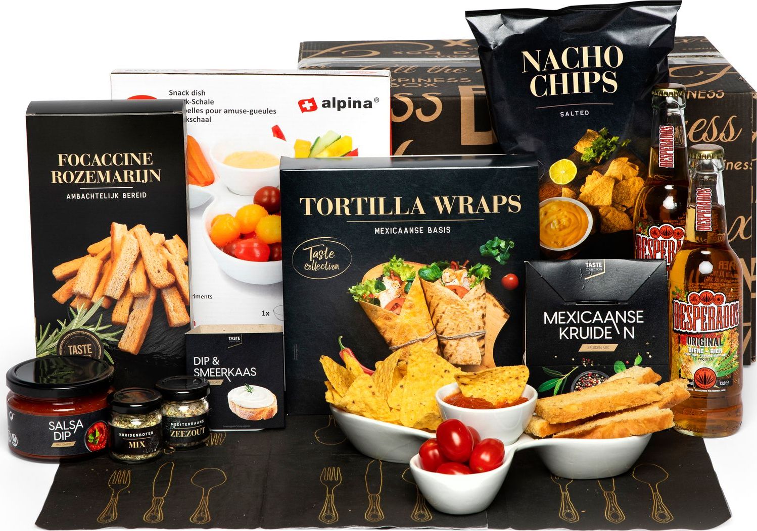 Geniet deze kerst van Mexicaanse gerechten met dit rijk gevulde kerstpakket. In een handomdraai zet je heerlijke wraps op tafel. De handige snackschaal van Alpina komt goed van pas bij elke borrel. De schaal heeft 4 bakjes en het middelste bakje kanvan de schaal gehaald worden. Dat is niet alleen super leuk maar ook super handig. Dit smaakvolle Mexicaanse kerstpakket komt goed van pas tijdens de feestdagen.