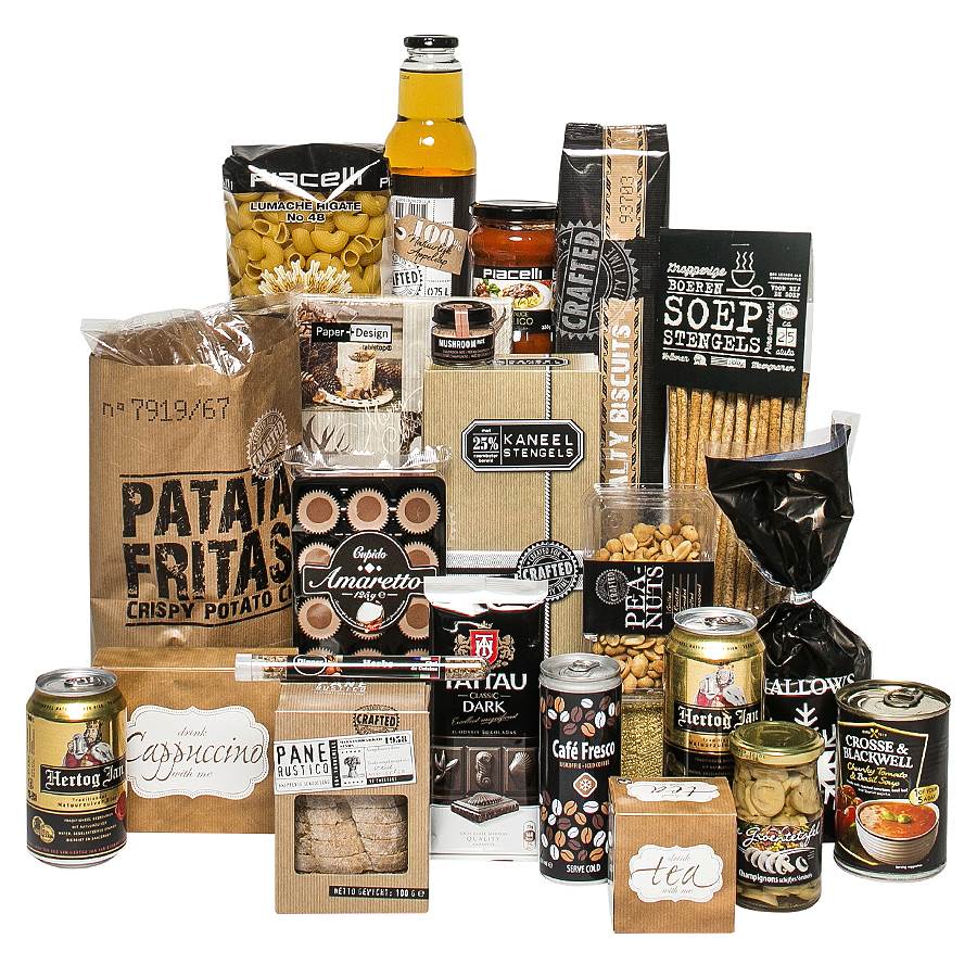 Wat een prachtig samengesteld pakket is dit! Begin maar snel met uitpakken, wat een pracht wanneer dit uitgestald op uw keukentafel staat. Deze kwaliteitsproducten zijn speciaal geselecteerd zodat u de hele dag door bent voorzien van een hapje en een drankje. Wat zult u tijdens de feestdagen genieten met de hele familie van al dit heerlijke eten en drinken.