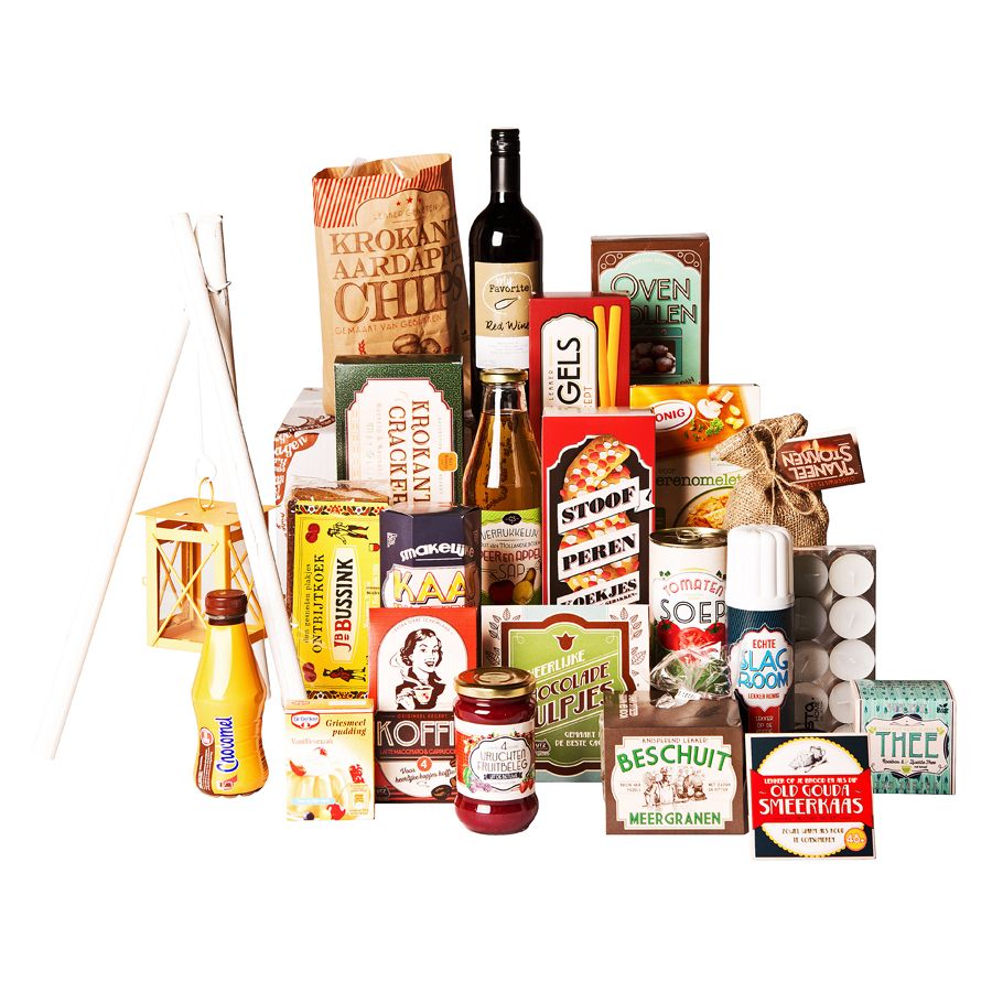 Met dit nostalgische pakket waant u uzelf in het winkeltje van vroeger waar de beste koopwaren werden aangeboden. Het is alsof de tijd even stilstaat. En met het prachtige windlicht op drie poten is dit sfeervolle pakket helemaal compleet.