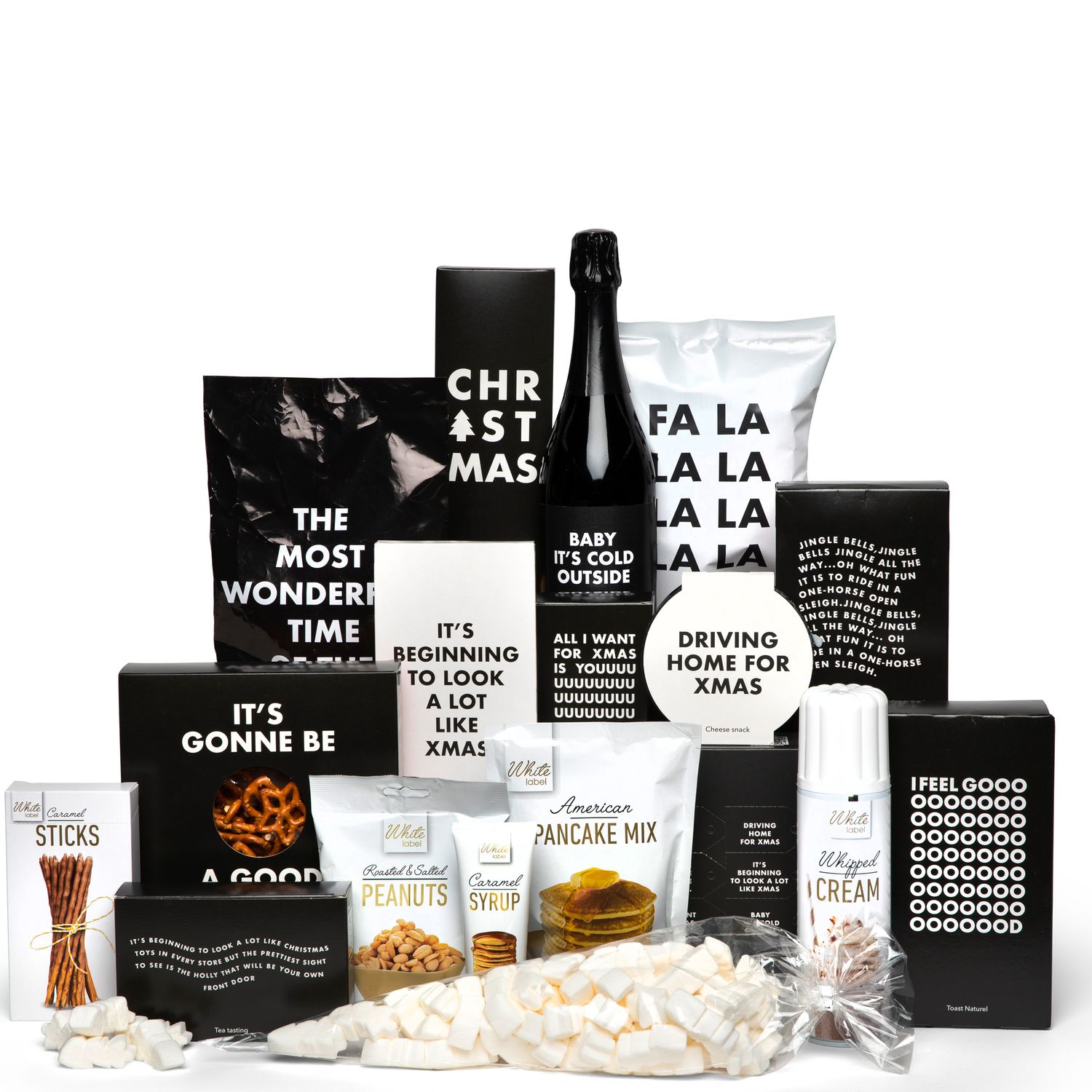 Kerstnummers zijn niet weg te denken in de periode voor Kerst. En dat komt goed uit, want een aantal verpakkingen uit dit pakket bevat een deel van een songtekst en een QR-code, Met deze code kun je meteen het nummer beluisteren op Spotify. Zo vier jij dit gezellige feest met lekkere, typische kerstproducten én een muziekje op de achtergrond.
