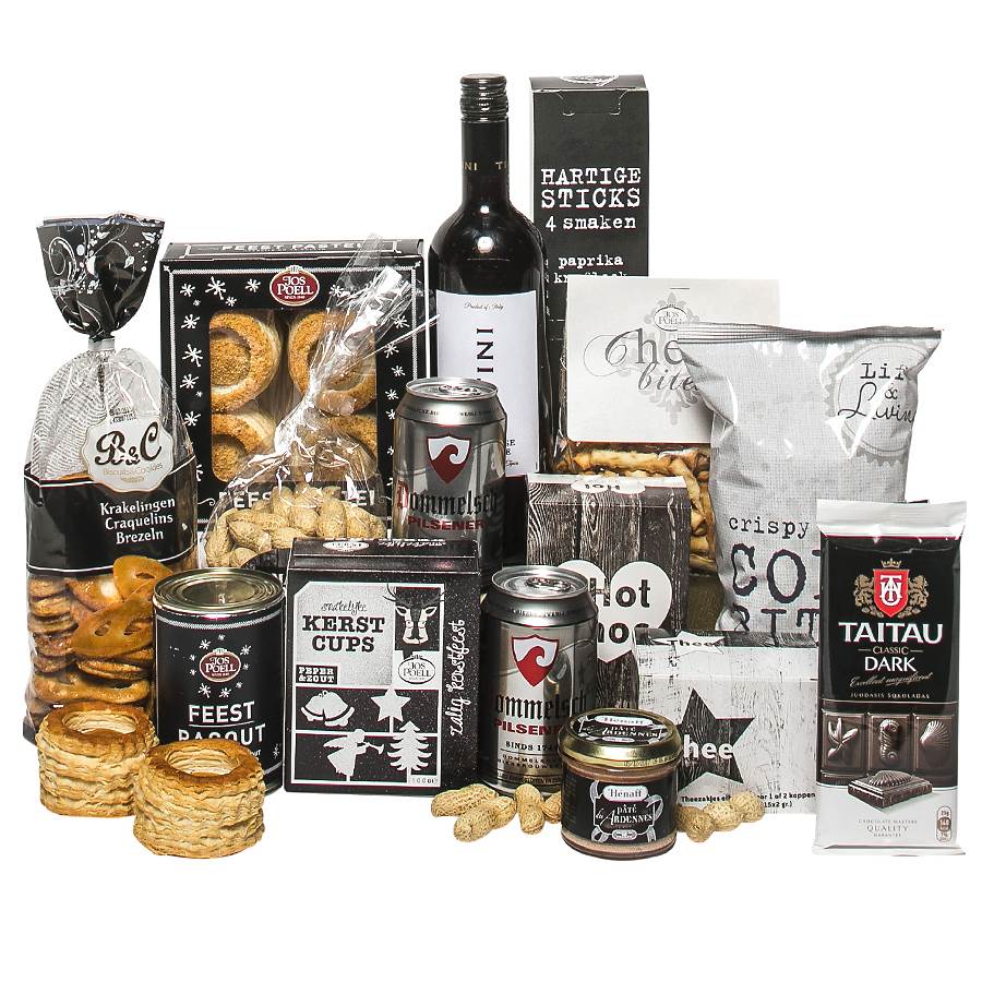 Dit pakket heeft een eigentijdse en tevens klassieke uitstraling. De kleurstelling is klassiek echter de vormgeving is strak en modern en bevat producten die men graag in huis haalt tijdens de feestdagen. Dat hoeft u dus niet meer te doen, dat hebben wij voor u geregeld. U hoeft alleen nog maar te zorgen voor fijn gezelschap om al dit lekkers mee te delen.