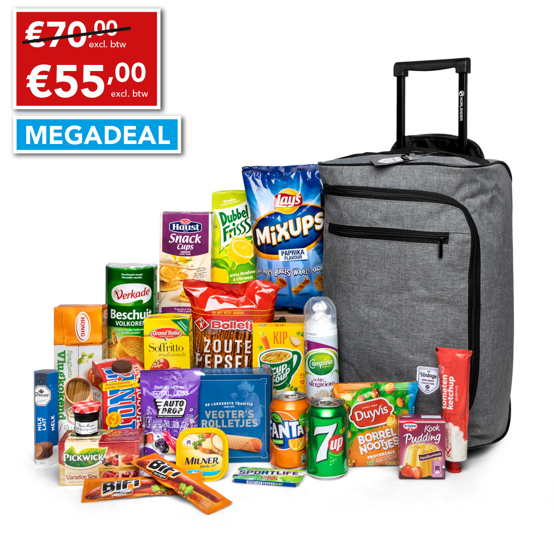 Dit rijk gevulde A-merken kerstpakket met luxe trolley wil iedereen wel ontvangen. Deze praktische en zeer ruime trolleytas is gemaakt van modern twin-tone materiaal. Is voorzien van stevige draaghengsels, een uitschuifbaar trolleysysteem, twee wieltjes en een zeer ruim voor vak met aparte rits. Hier zal de ontvanger nog lang van genieten.