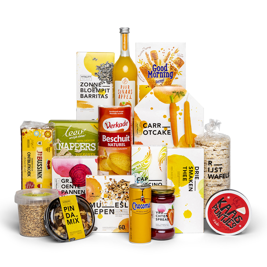 Feel Good! De balans tussen gezond en lekker eten is belangrijk. In dit frisse pakket laten we zien dat gezond juíst ook heel lekker kan zijn. Combineer de producten met verse groente en fruit voor gevarieerde maaltijden en tussendoortjes. Feel Goodzit hem ook in maatschappelijk verantwoord ondernemen, want elk product uit de Vitality lijn draagt op zijn manier bij aan een duurzame toekomst. Zo worden een aantal artikelen ingepakt door medewerkers met een afstand tot de arbeidsmarkt, en wordt gedoneerd aan het Jeugdfonds Sport en de Voedselbank.
