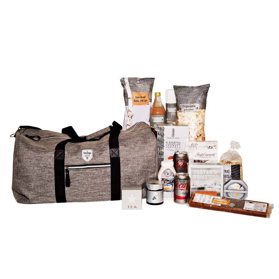 Verras uw medewerkers met dit goed gevuld en zeker moderne kerstpakket. Gevuld met een mooie weekendtas en heerlijke lekkernijen. Het geeft u gelijk een warm kerstgevoel!