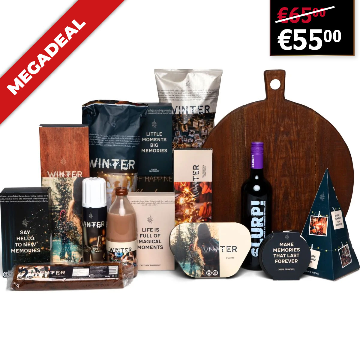 Uitkijken naar de eerste sneeuwvlokken, de geur van kerstbomen, wandelen over de kerstmarkten. Met dit kerstpakket kom je helemaal in winterse sferen. Winters, warm en met een belangrijke boodschap collect moments, not things. Dit sfeervolle pakket geeft een boodschap mee op de verpakkingen. En de robuuste Le Bergier serveerplank is een musthave in iedere keuken en op elke tafel.