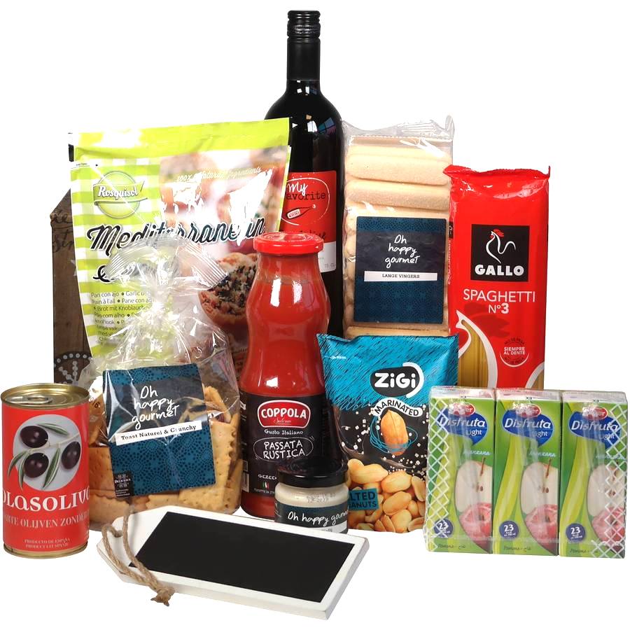 De diversiteit van dit goed gevulde pakket zal u verbazen. Heerlijke producten voor jong en oud. En komt er onverwachts nog meer visite? Dan zet u in een handomdraai de lekkerste hapjes op tafel.