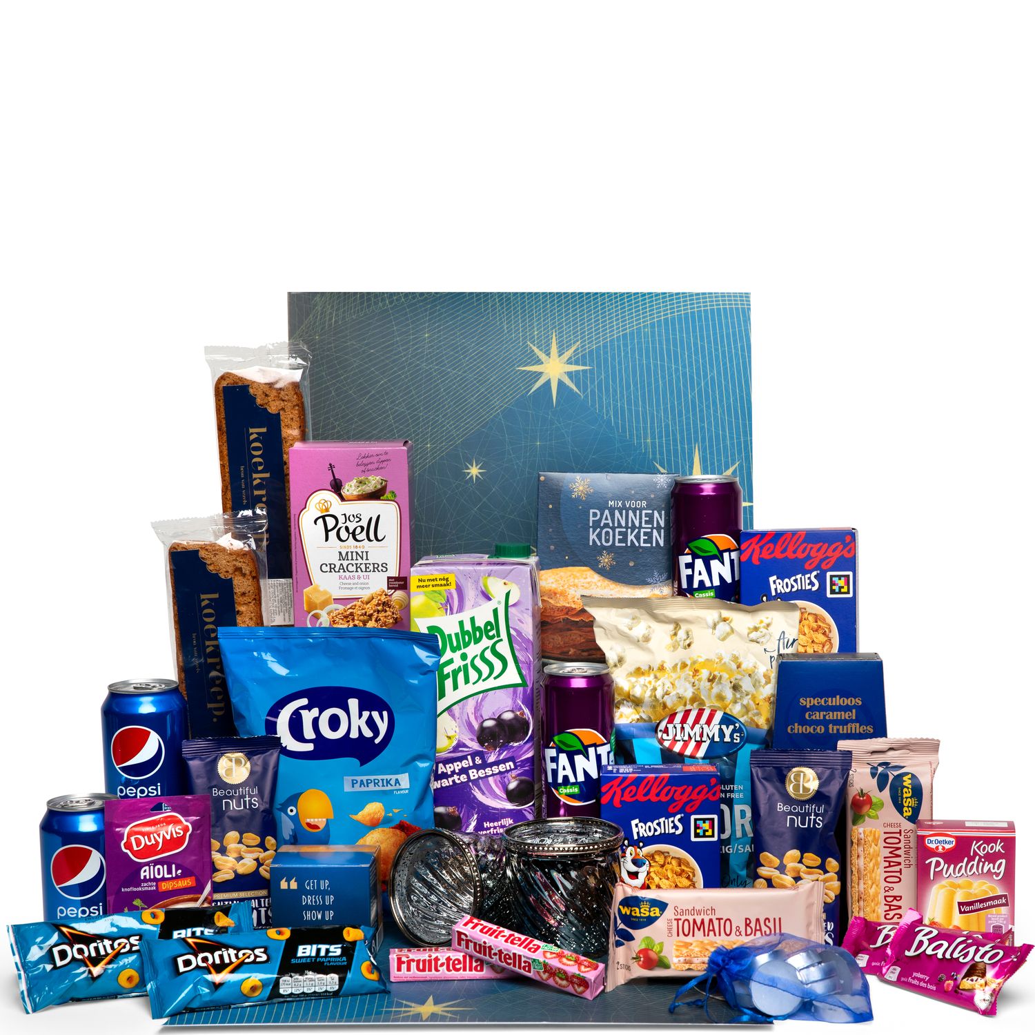Dit vrolijke kerstpakket is een aanrader voor degene die van uitpakken houdt. Heerlijke producten om samen van te genieten. En voor wat extra sfeer hebben we twee fraaie Riverale windlichten toegevoegd.