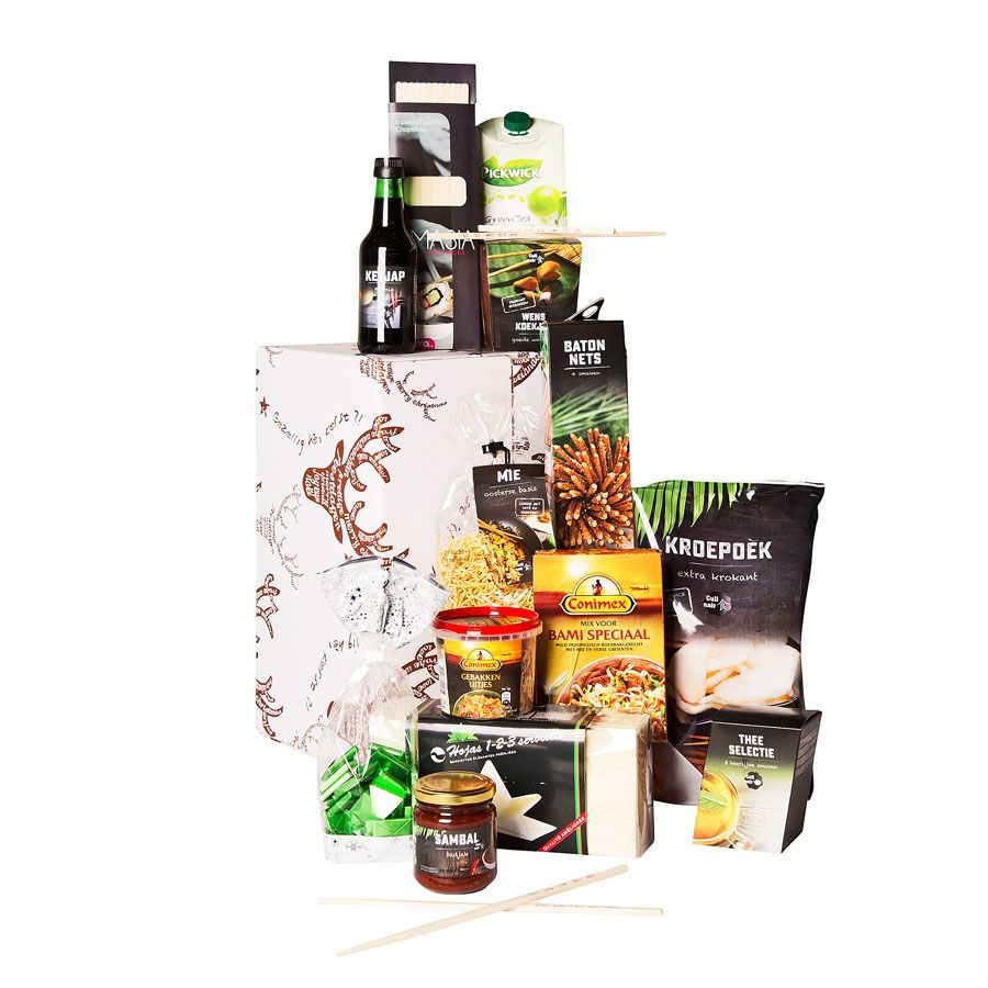 Dit kerstpakket neemt u mee naar een ander continent. Het pakket bevat producten voor een heerlijke Oosterse maaltijd. En dan mogen de chopsticks en fortue cookies natuurlijk niet ontbreken. Smakelijk eten!