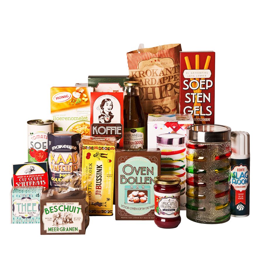 Gezelligheid. Dat is wat dit pakket uitstraalt. De ontvanger van dit prachtige pakket zal zich tijdens het uitpakken helemaal in een nostalgisch winkeltje van vroeger wanen. Prachtige producten met een knipoog naar het verleden. En in de nostalgische voorraadpot kunt u uw opengebroken producten goed bewaren.