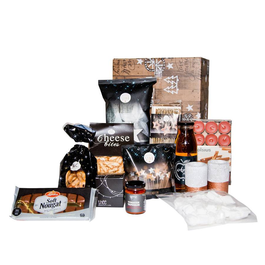 Verblijd iedereen met dit prachtige pakket gevuld met smaakvolle producten. Met deze mooie waxinelichthouders in beton/ koper look zijn de kerstavonden mooi verlicht en kunt u genieten van deze gezellige feestdagen.