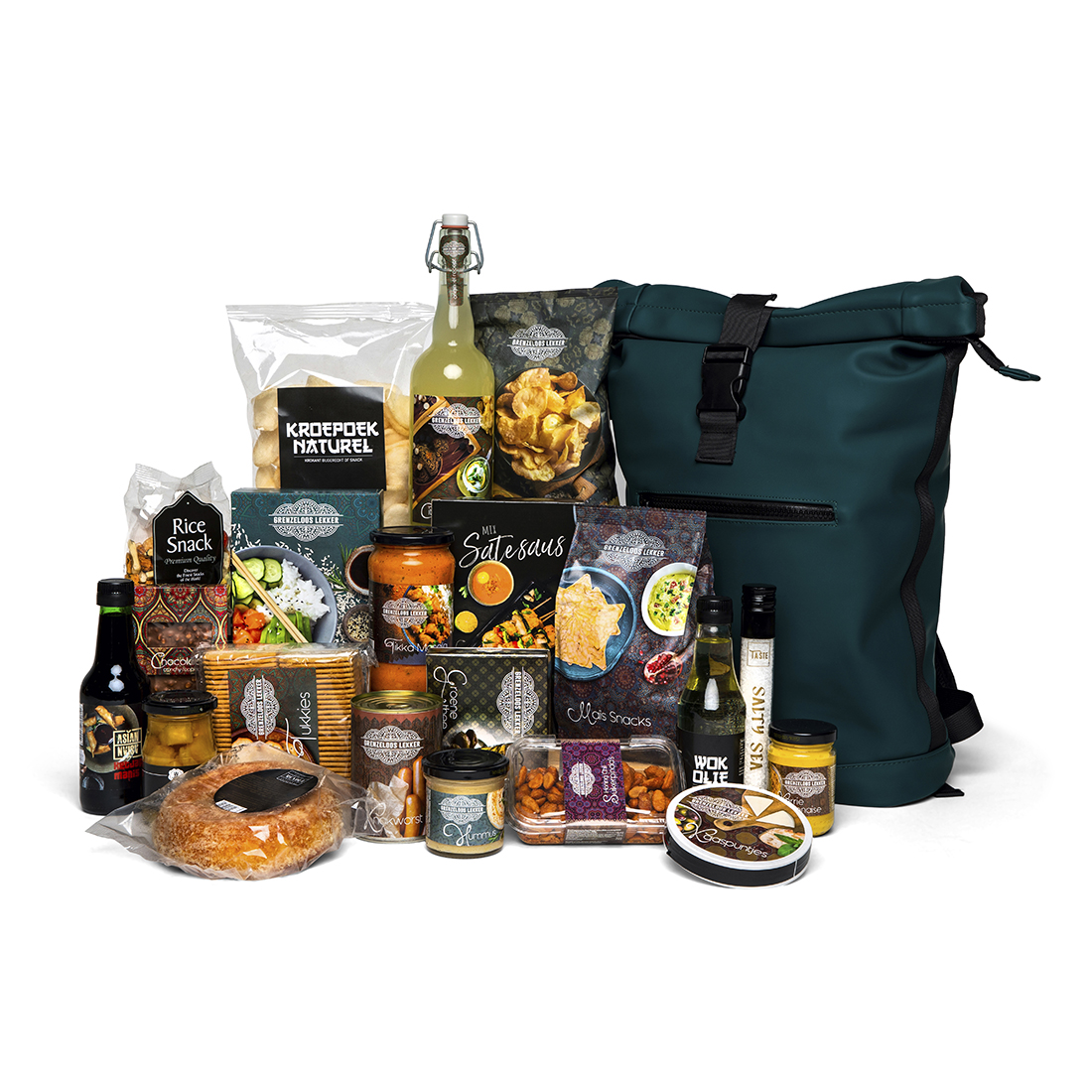 Geniet samen van dit grenzeloos lekkere kerstpakket met royale rugtas. De aantrekkelijke rugtas is eenvoudig te herkennen aan het Dull (matte) PU leer waarvan de tas is gemaakt. Naast de originele ritssluiting aan de bovenkant, is de tas gemaakt vanwaterafstotend materiaal en ook nog eens extra af te sluiten met een gesp. De stevige schouderbanden zorgen voor een optimaal draagcomfort. Ook het afsluitbare voorvak kan als een echt pluspunt worden gerekend.