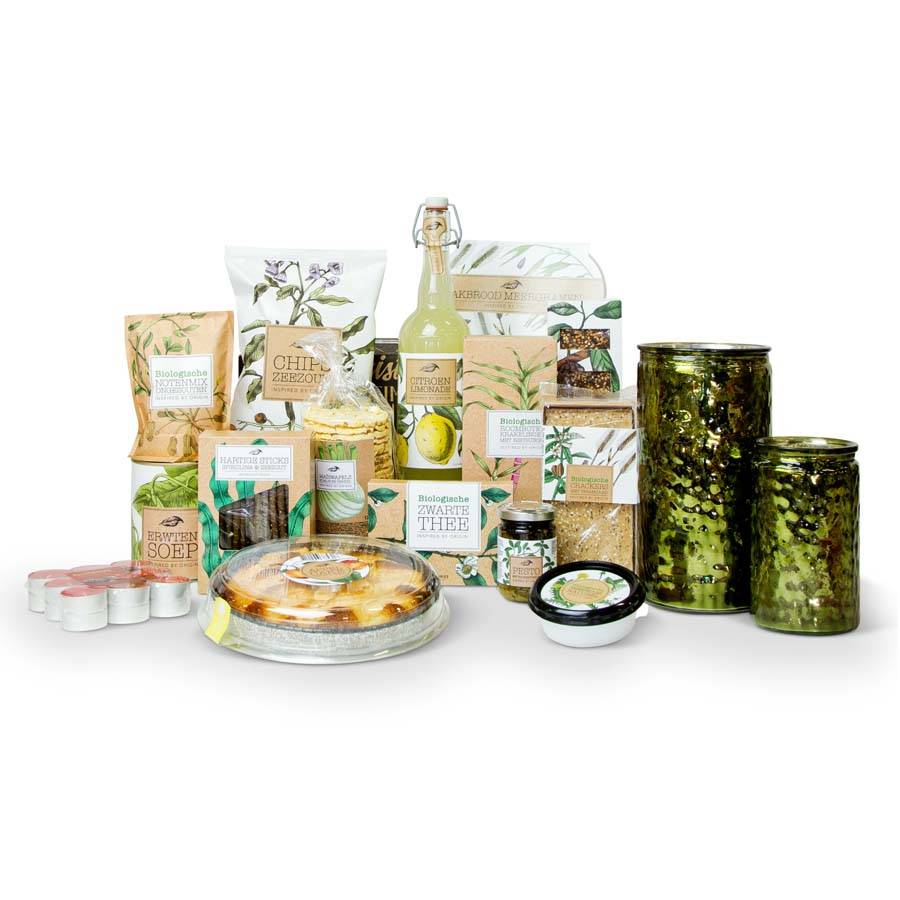 Een leuk biologisch pakket met mooie bijpassende windlichten. Wanneer u deze ?s avonds op tafel zet, hoeft u geen lampen aan te doen. Dit scheelt weer elektriciteit: groen moeten we allemaal doen!