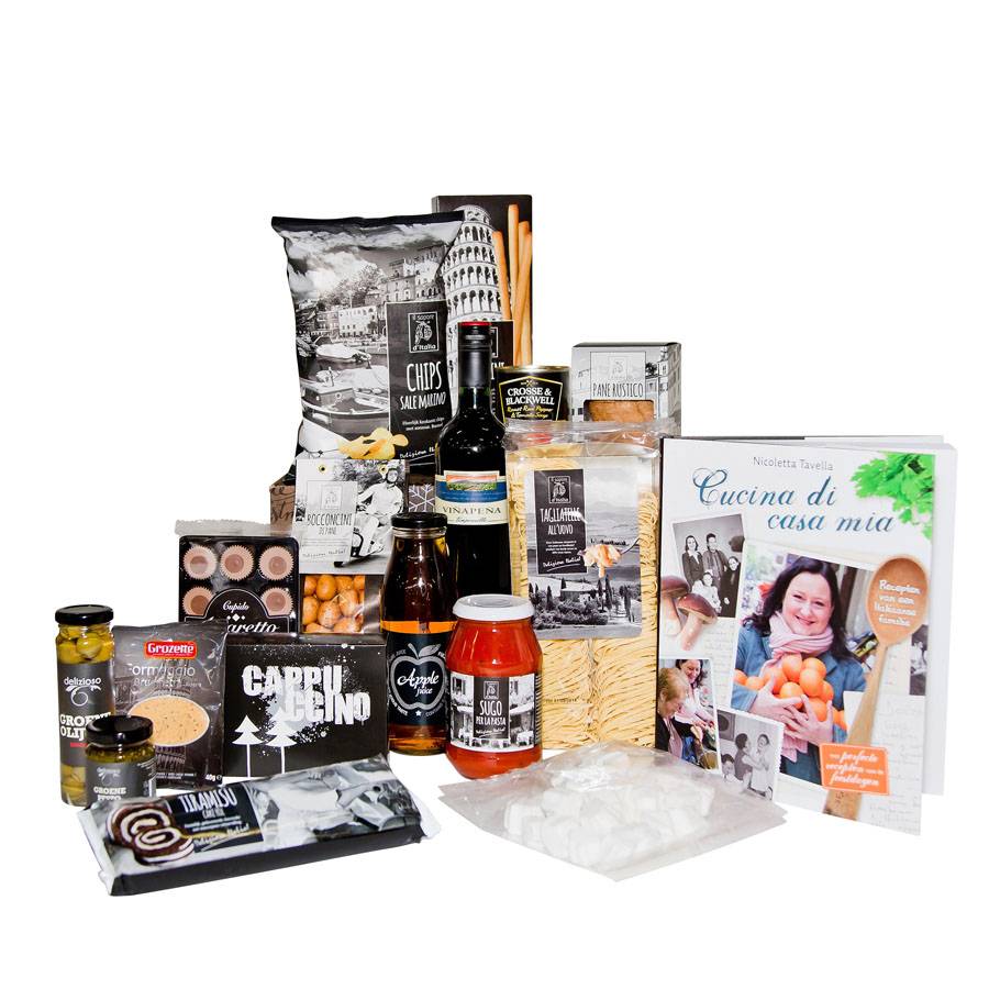 Dit prachtige kerstpakket neemt u even mee naar een ander continent. Geniet van de heerlijk Italiaanse keuken. In het bijgeleverde boekje 'Italiaans Cucina di casa mia' vindt u heerlijke gerechten, zodat u voor de feestdagen alvast nieuwe kookideeën kunt op doen. Vier de feestdagen, drink een lekkere rode wijn, eet een verrukkelijke Italiaanse cake en geniet van al het lekkers dat dit pakket u biedt. Proost!