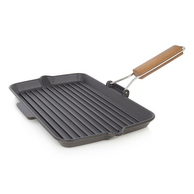 Nog beter grillen doe je met de gietijzeren Fontignac grillpan. Deze rechthoekige pan heeft een afmeting van 34 bij 21 cm. De diepe groeven van de gietijzeren grillpan zorgen voor het gewenste grilleffect. De pan heeft een lichtjes schuin aflopende bodem waardoor het vet langs de zijkant weg loopt. Daarnaast beschikt de grillpan over schenkranden, zodat u het sap zonder morsen uit kunt gieten. De pan is geschikt voor gebruik op alle kookplaten, inclusief inductie. Veel grillplezier. Van dit pakket zal de ontvanger nog lang genieten.