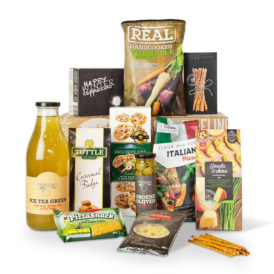 Ik wil Italie Lekkernijen! Van bruchette tot olijven en van pizzasnacks tot pizzabakmix, u denkt straks alleen nog maar in het Italiaans! Dit pakket is misschien niet de grootste, maar zeker niet de minste. Als u lekker wilt relaxen met het gezin opde bank dan biedt dit pakket zeker een uitkomst, aangezien er met iedereen rekening is gehouden!