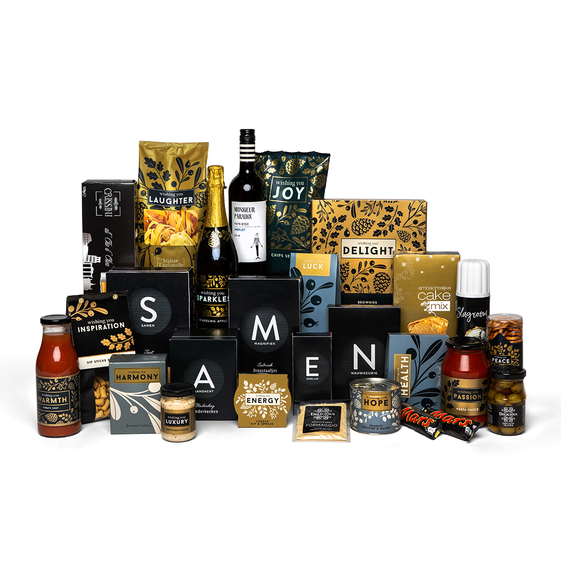 Hoe leuk is het om uw medewerkers te bedanken met het kerstpakket zelf? Met dit pakket gaat het zeker lukken. Woorden zeggen hier alles, dit bomvolle pakket zit vol positieve teksten. Bedankt, we hebben het Samen gedaan.