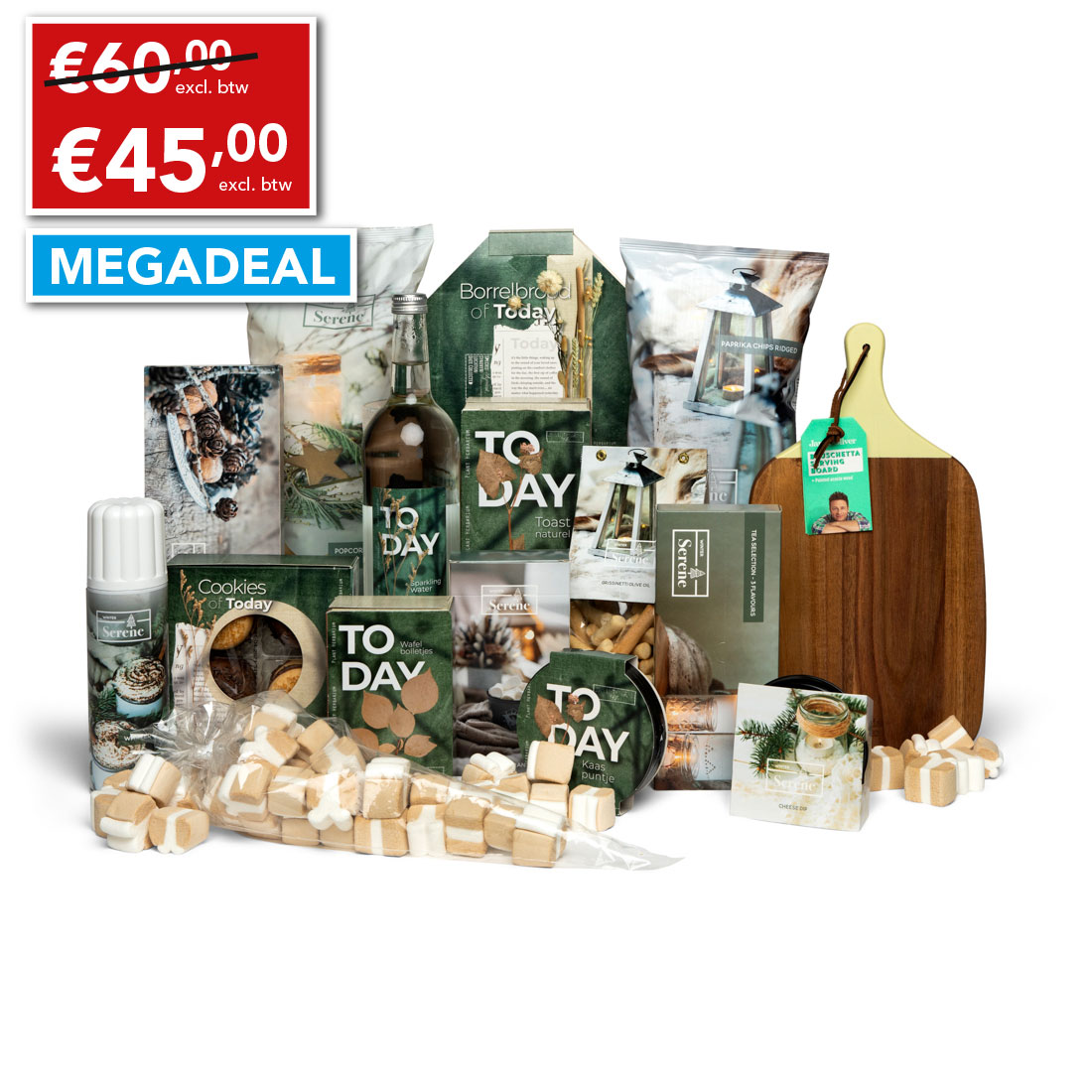 Met dit prachtige kerstpakket kunt u echt uitpakken en uw waardering laten blijken aan uw medewerkers. Een smulpartij voor het hele gezin. Aan ieders wil is gedacht, zowel jong als oud. En de Jamie Oliver snij- serveerplank is een eyecatcher op iederaanrecht of tafel.