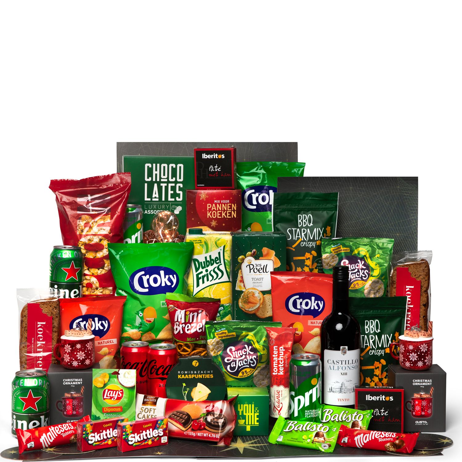 De kerstsfeer in huis halen was nog nooit zo makkelijk dankzij dit bomvolle kerstpakket. Een tot aan de rand toe gevulde kerstdoos vol heerlijke lekkernijen voor het hele gezin. Laten we het pakket maar snel uitpakken. Met de twee ornamenten versierje je kersboom wel heel feestelijk. Jij bent geweldig en daarom verdien je dit rijk gevulde pakket.