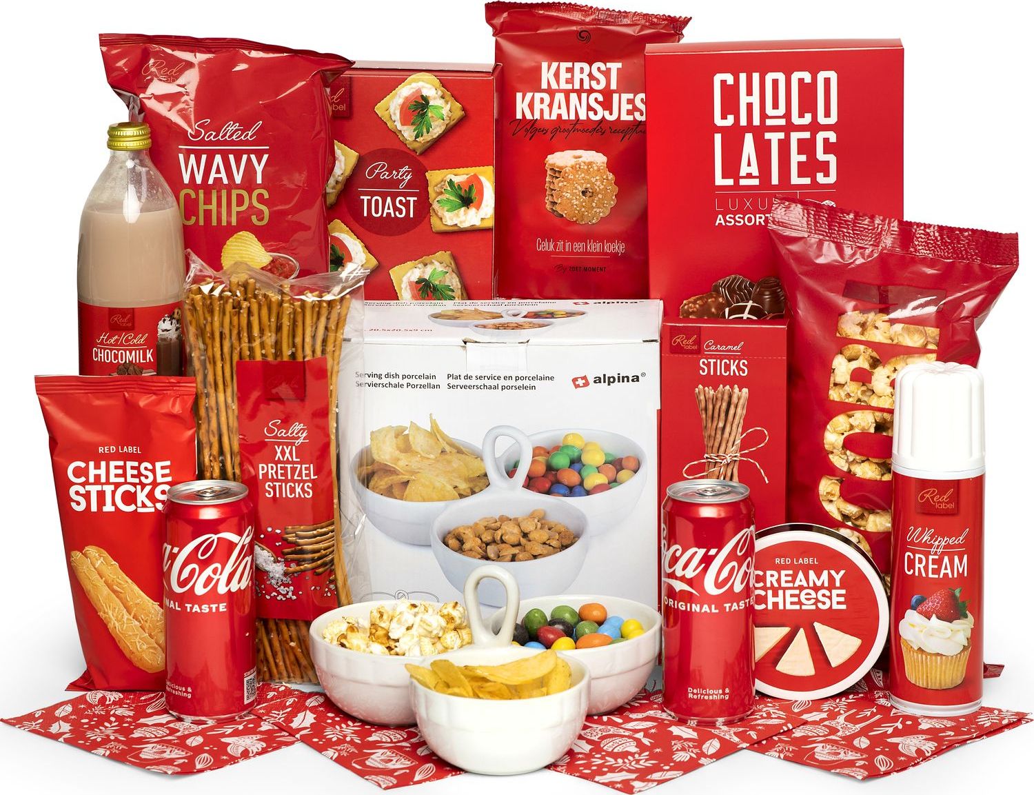 Er is geen kleur zo feestelijk en onlosmakelijk verbonden met Kerst dan rood! Wij hebben de doos daarom gevuld met uitsluitend smakelijke, rode producten die heel goed van pas zullen komen tijdens de feestdagen. De trendy serveerschaal van Alpina heeft drie verschillende bakken waardoor je verschillende snacks gemakkelijk kunt scheiden. Wij hebben lekkere snacks toegevoegd om de bakjes te vullen.