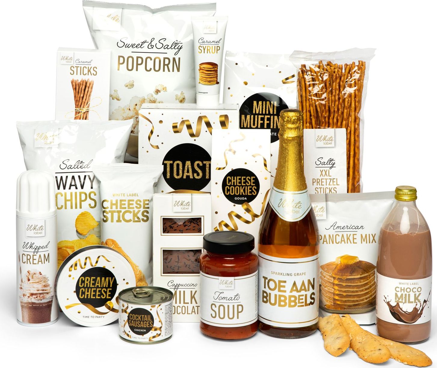 De kerstsfeer in huis halen was nog nooit zo makkelijk dankzij dit super leuke witte kerstpakket. Laat je inspireren door de smaakvolle lekkernijen en breng een toost uit op het nieuwe jaar.