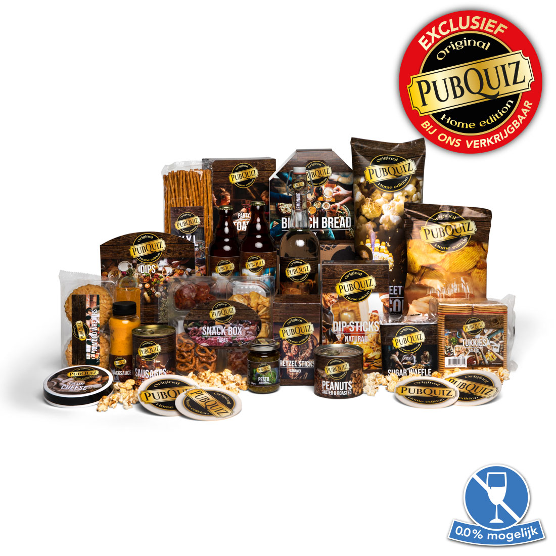 Gezellig met vrienden en familie genieten van dit bomvolle PubQuiz kerstpakket vol heerlijke producten. Dat wordt een avond om nooit te vergeten.