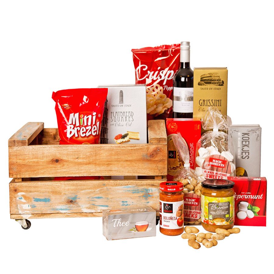 Ja, dat ziet u zeker goed! Een heel krat gevuld met de allerlekkerste producten! Genieten gaat u zeker doen na ontvangst van dit prachtige kerstpakket. Natuurlijk hoort het krat ook bij dit kerstpakket. Zo heeft u gelijk een nieuwe eye catcher in uw huis staan!
