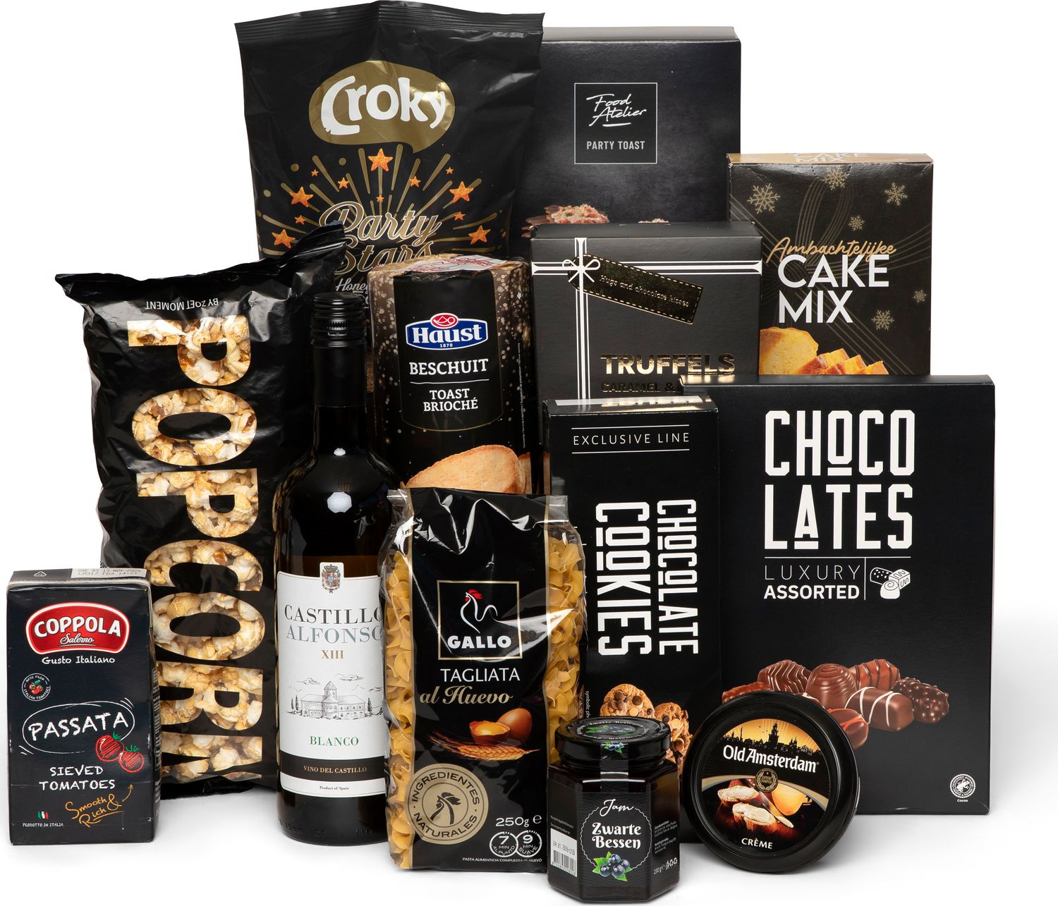 Het is party time met dit leuke snack kerstpakket 2024. Geniet samen met vrienden of familie van de lekkerste producten uit dit leuke pakket.