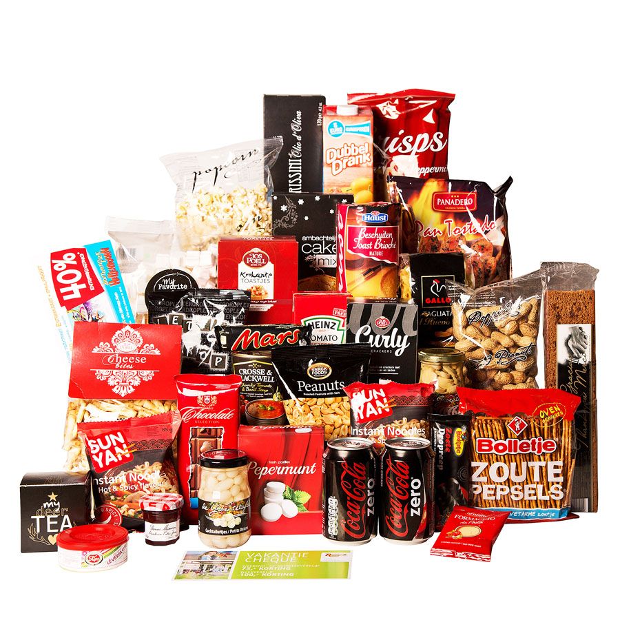 Lekker en vol gevuld kerstpakket voor jong en oud. Dit pakket is met zorg voor u samengesteld om de kerstdagen volop te genieten van al dit lekkers.