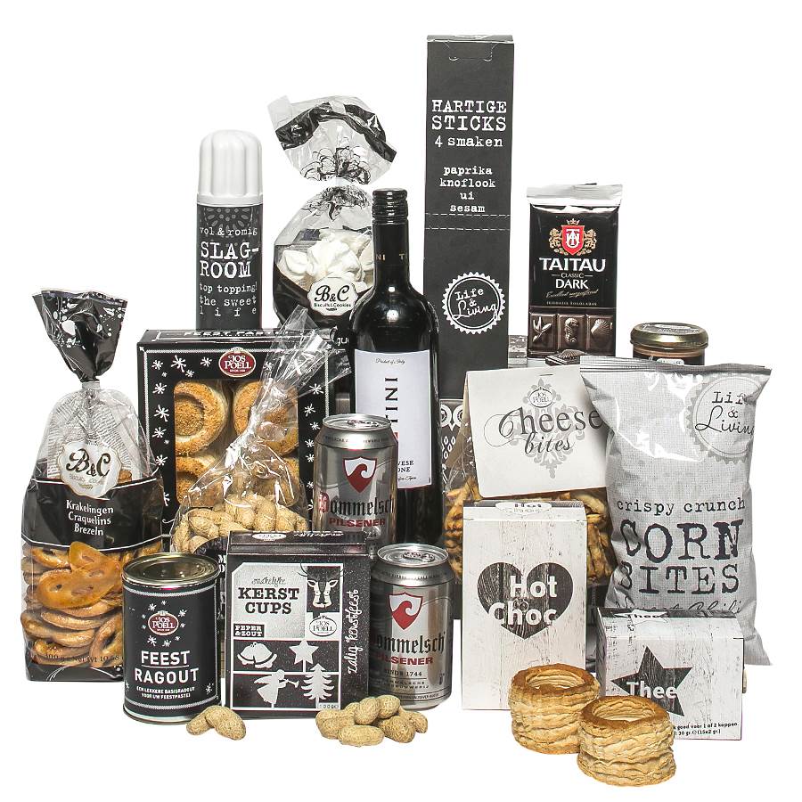 Het wordt lekker gezellig in huis deze kerst. De kerstboom is versierd en de kaarsjes staan op tafel. Een sfeervol muziekje op de achtergrond, heerlijk huiselijk! De sfeer is helemaal compleet als u dit pakket heeft uitgepakt! De smakelijkste dingen hebben wij voor u geselecteerd zodat u het lekker gezellig kunt maken met elkaar. Gezellige feestdagen toegewenst!