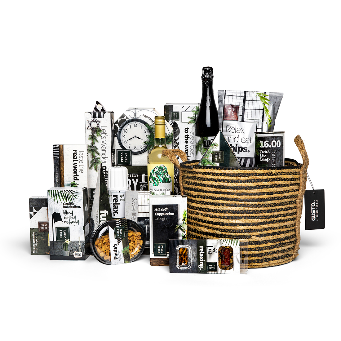 Offline gaan en genieten van wat echt belangrijk is. Met dit sfeervolle pakket vol lekkernijen komt het helemaal goed. Zowel jong als oud, iedereen geniet van dit bomvolle pakket. En de leuke mand is een ware eyecatcher.