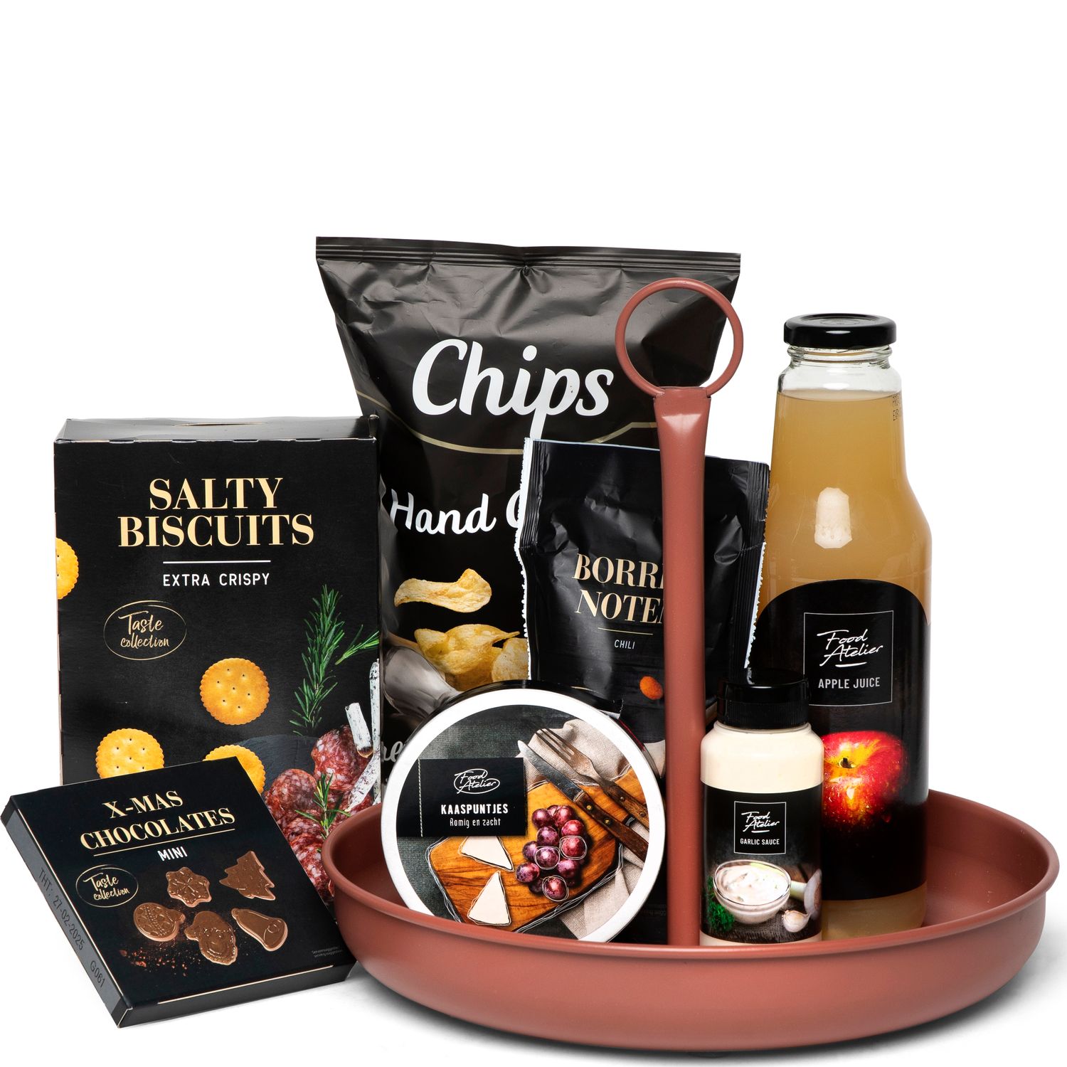 Het is party time met dit leuke snack pakket. Geniet samen met vrienden of familie van de lekkerste producten uit dit leuke pakket. U kunt de snacks serveren in de leuke serveerschaal. Een blikvanger op ieder tafel.