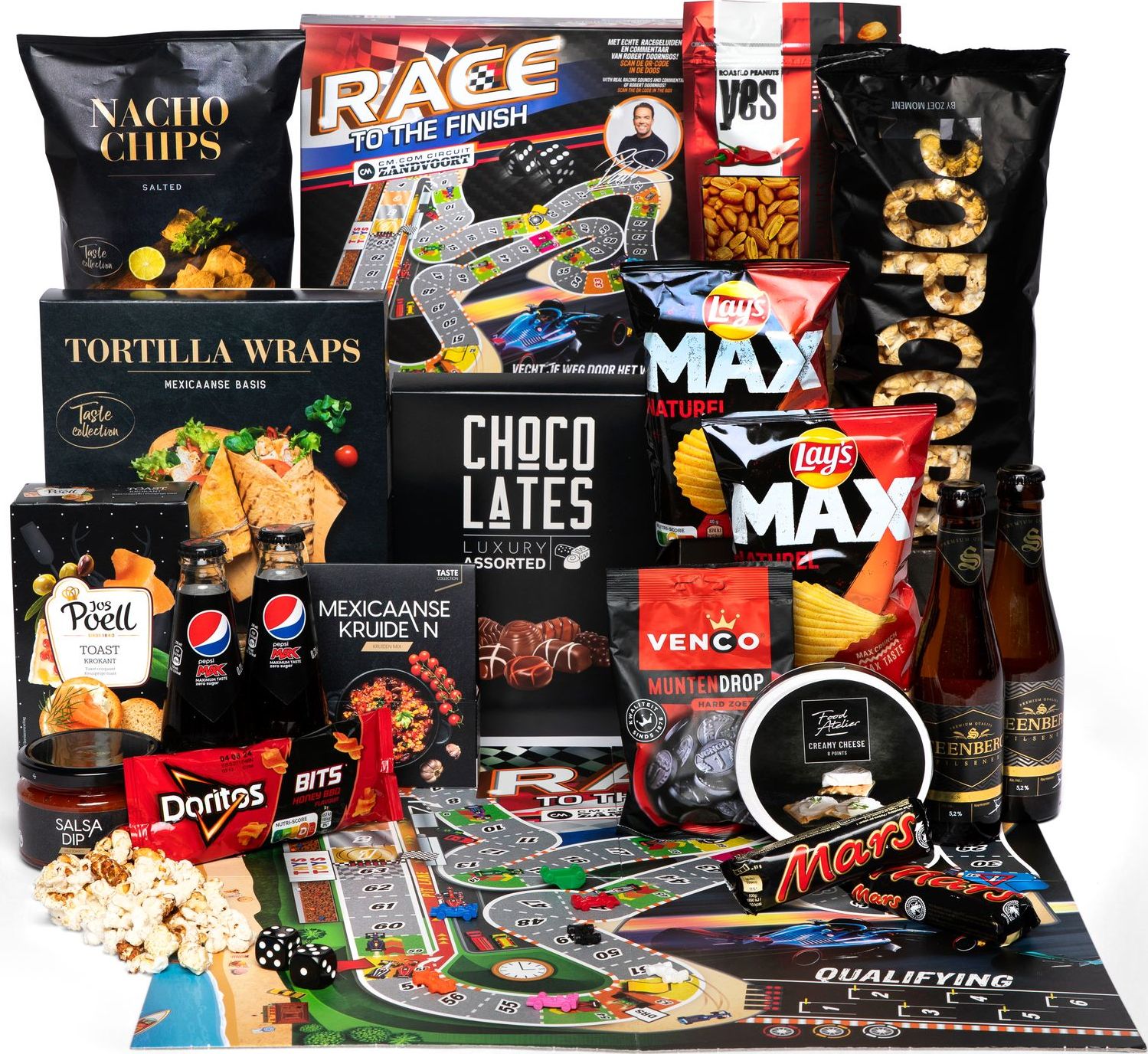 Een gezellige race avond met vrienden is niet meer weg te denken met dit geweldige Race to the Finisch spel van Rober Doonrbos. Zorg jij ervoor dat jouw raceauto als eerste over de finish komt? Dan win jij de race! Voel je als een echte coureur en beleef alle voor- en tegenslagen die je kunt hebben in een race. Een echte kwalificatie bepaalt de speelvolgorde. Daarna vecht je je een weg door het veld en probeer je de eerste plaats te veroveren. Op de gekleurde vakken kunnen de coureurs worden gehinderd of juist vooruit worden geholpen. Zo kan je auto een lekke band krijgen, in de grindbak belanden of zelfs crashen! Of gaat je DRS open of laat je fantastisch bochtenwerk zien wat je in staat stelt tot een legendarische inhaal-actie?! Terwijljestrijdt om de titel, doet Robert Doornbos verslag. Scan met je telefoon de QR-code en druk op de knoppen om echte racegeluiden te horen. Ben je als eerste over de finish, dan klinkt het volkslied en ben jij de winnaar van het spel: "Race to the Finish". Vergeet niet een mooie donut achter te laten.