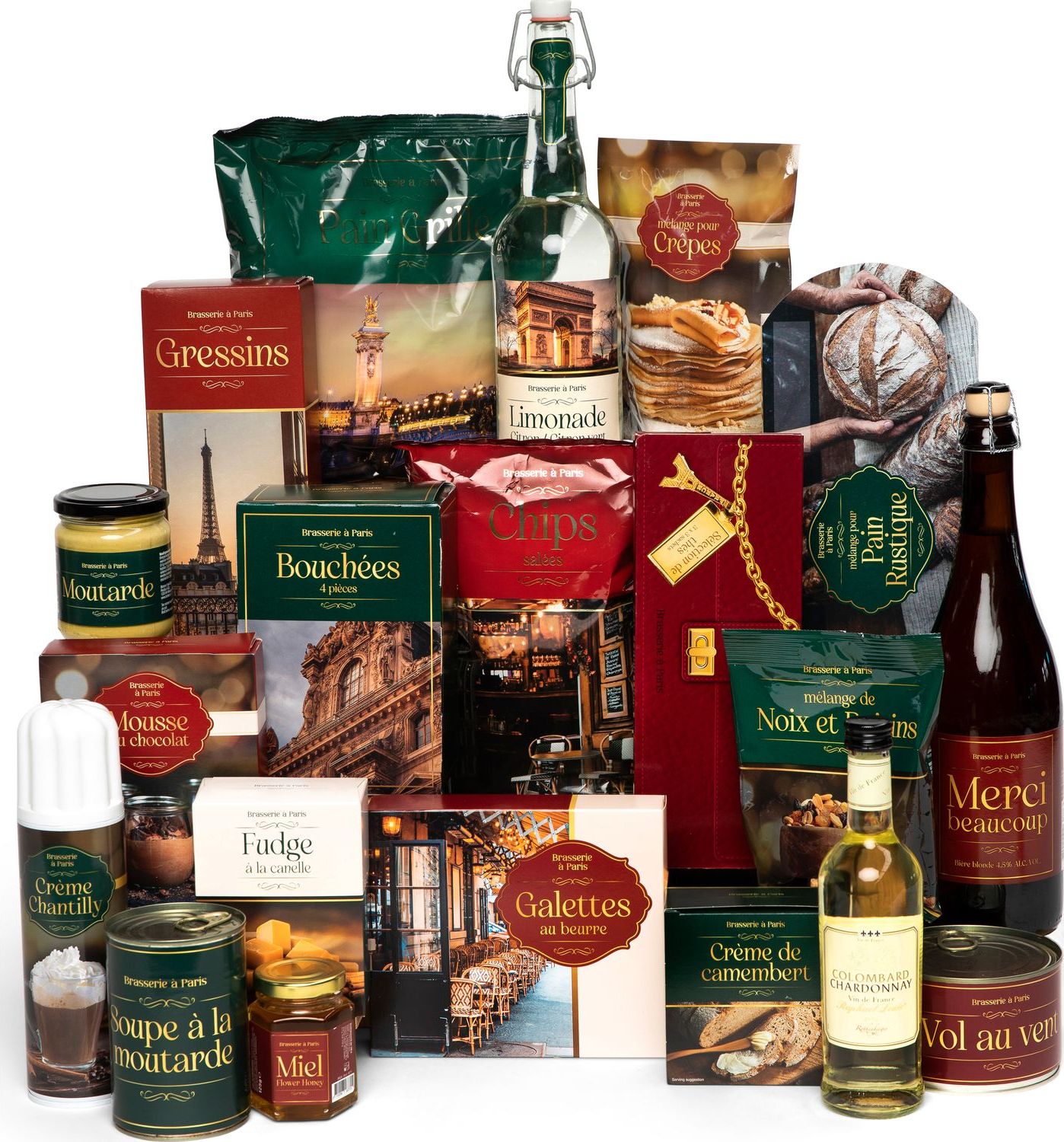 Met dit pakket creëer je onvergetelijke momenten met echte Parijse flair. Dit pakket neemt je mee op een culinaire trip door de Franse hoofdstad. De chique en elegante uitstraling van de stad Parijs wordt op de verpakkingen weergegeven door middel van prachtige foto's. Proef de verfijnde smaak van Franse klassiekers als crêpes, chocolademousse, galettes en camembert.