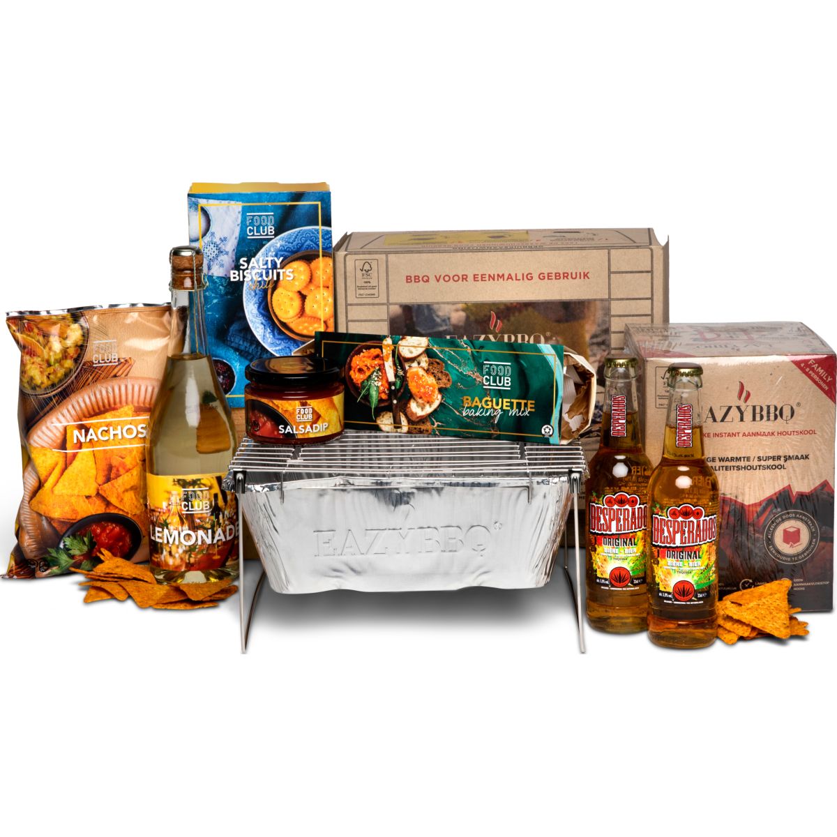 Gezellig barbecueën, dat is waar het in dit vrolijke kerstpakket om gaat. Samen genieten van een koud biertje of frisse lemonade met nacho chips, salty biscuits of stokbrood. Daar word je blij van.